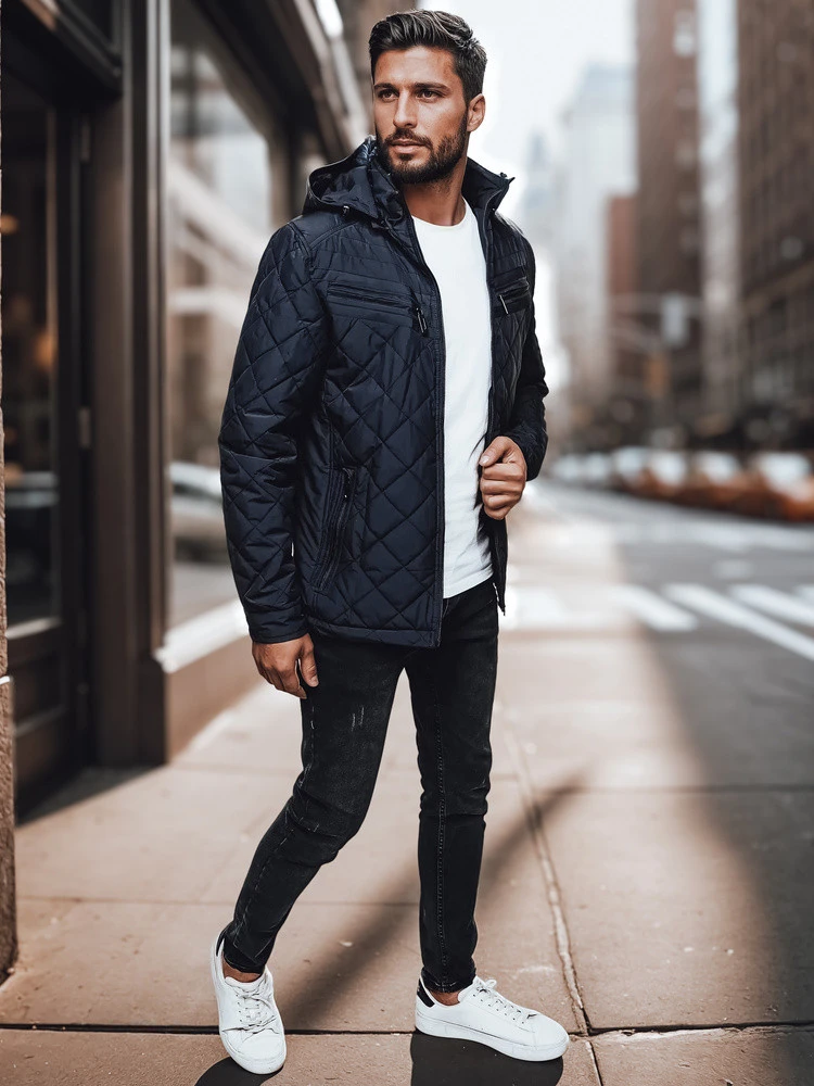 Pánská přechodná bunda s kapucí FashionStreet tmavě modrá TX4990