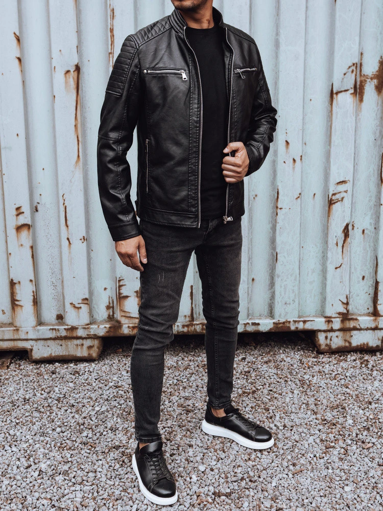 Pánská přechodná kožená bunda černá Dstreet TX4731