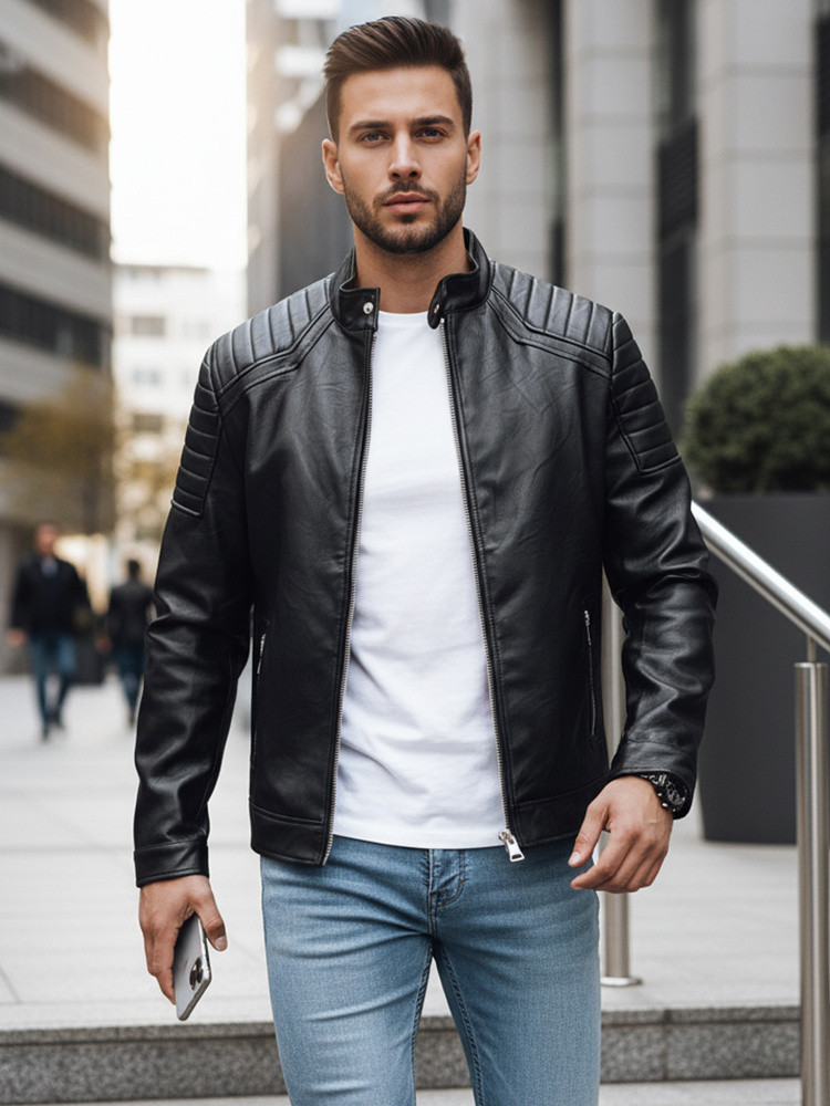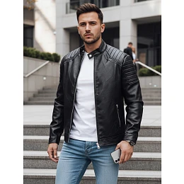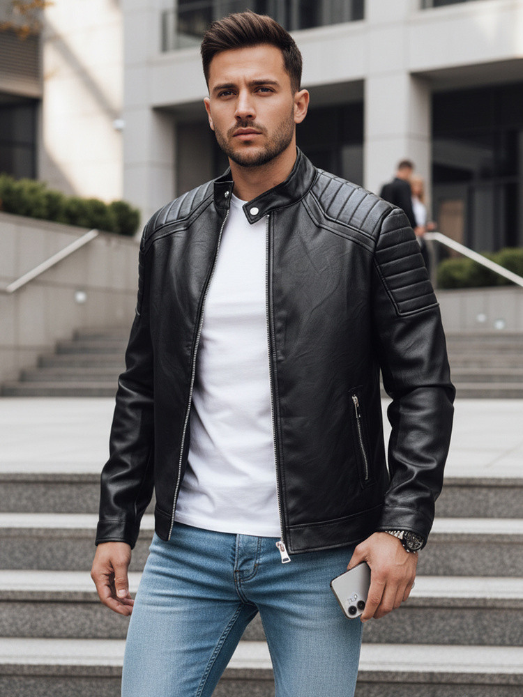Pánská přechodná kožená bunda černá FashionStreet TX4732