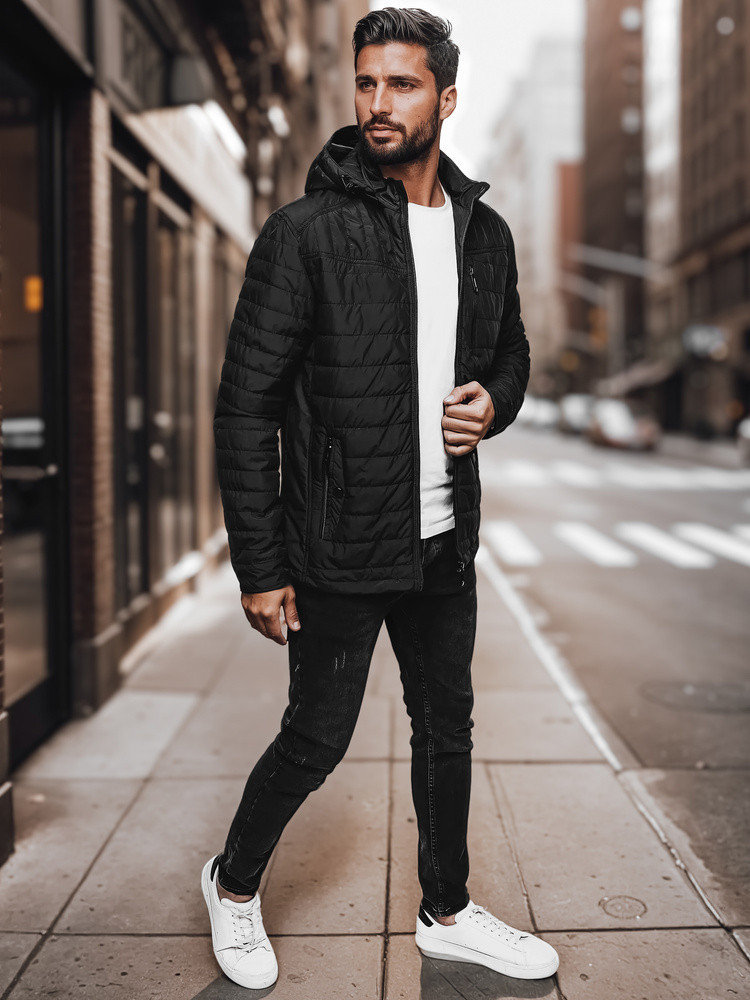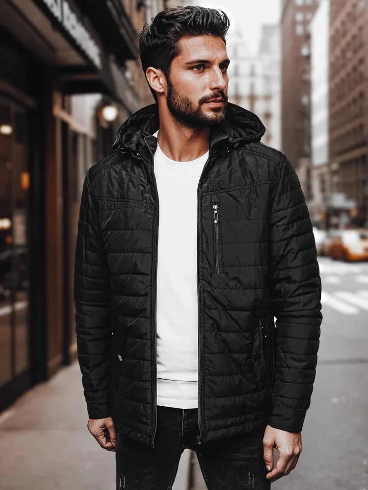 Pánská přechodná prošívaná bunda s kapucí černá FashionStreet TX4998