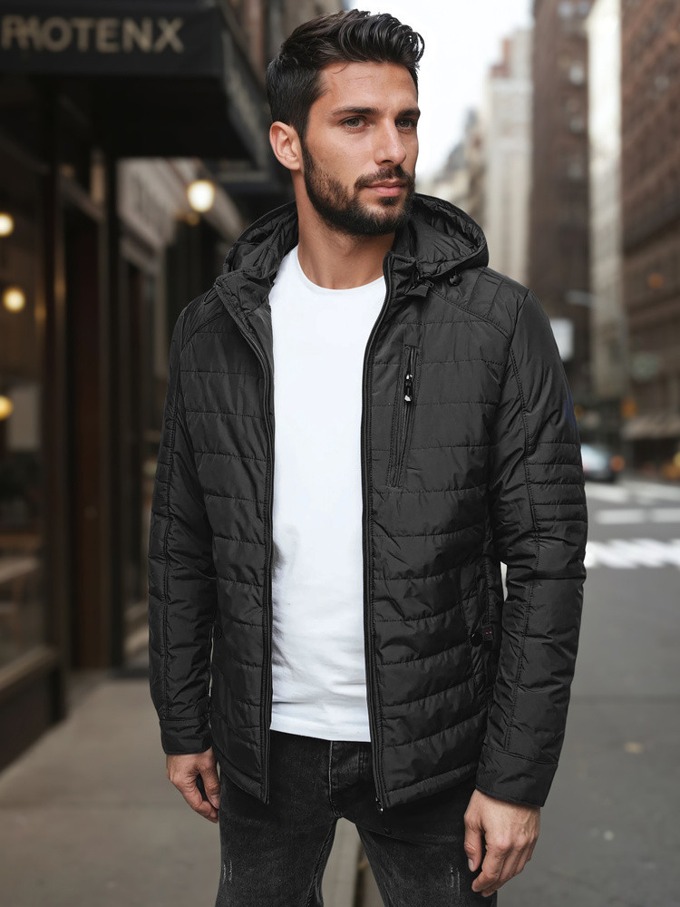 Pánská přechodná prošívaná bunda s kapucí černá FashionStreet TX5003