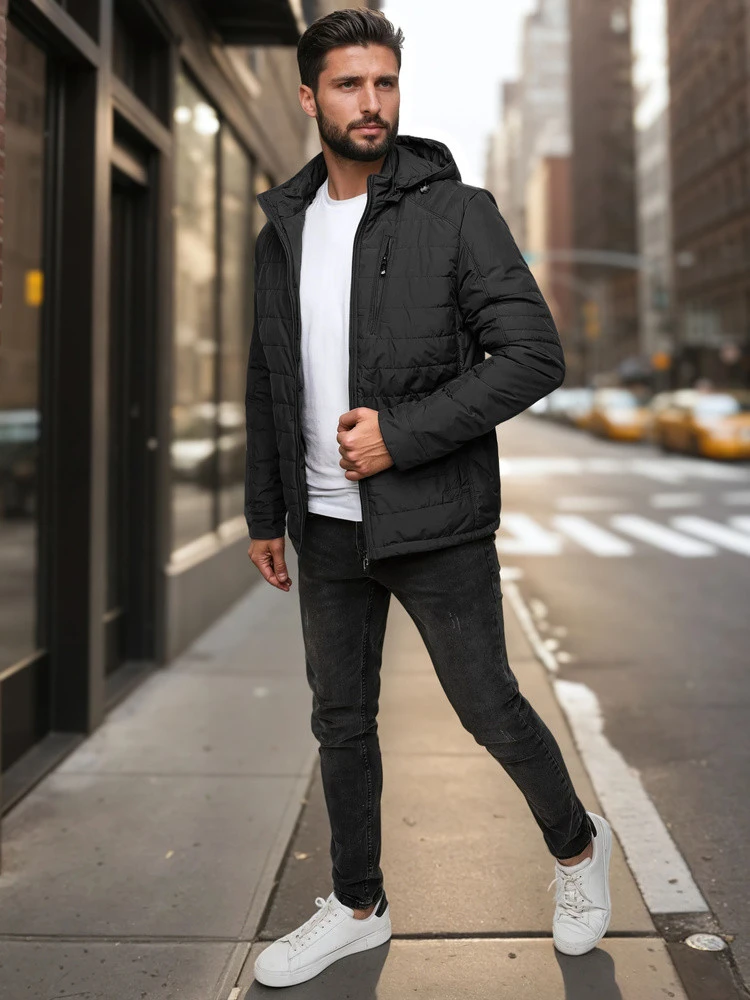 Přidání recenze k Pánská přechodná prošívaná bunda s kapucí černá FashionStreet TX5003