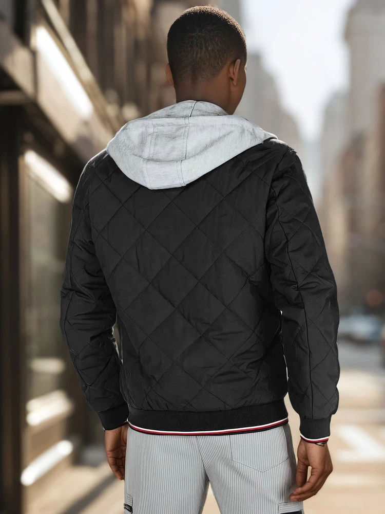 Pánská přechodná prošívaná bunda s kapucí černá FashionStreet TX5010