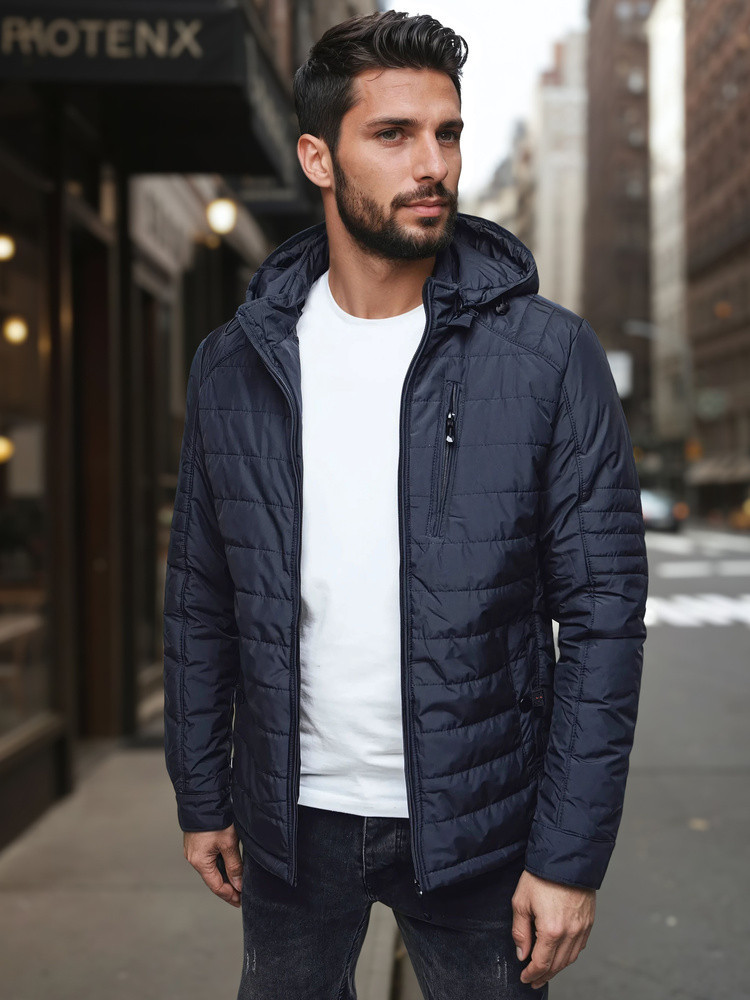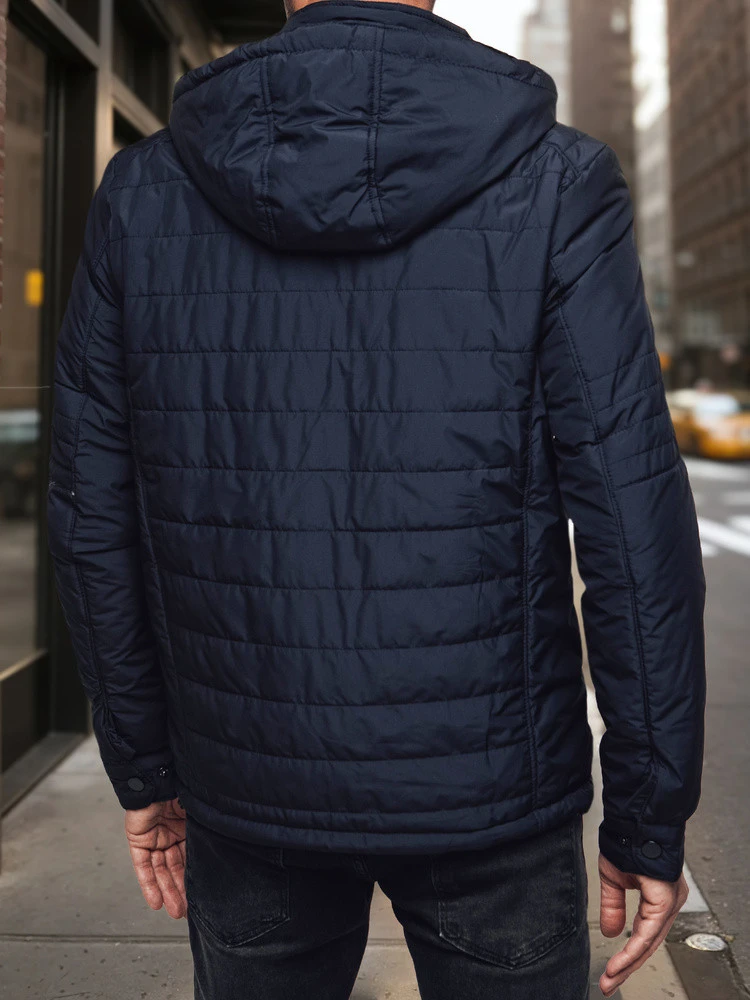 Pánská přechodná prošívaná bunda s kapucí tmavě modrá FashionStreet TX5004