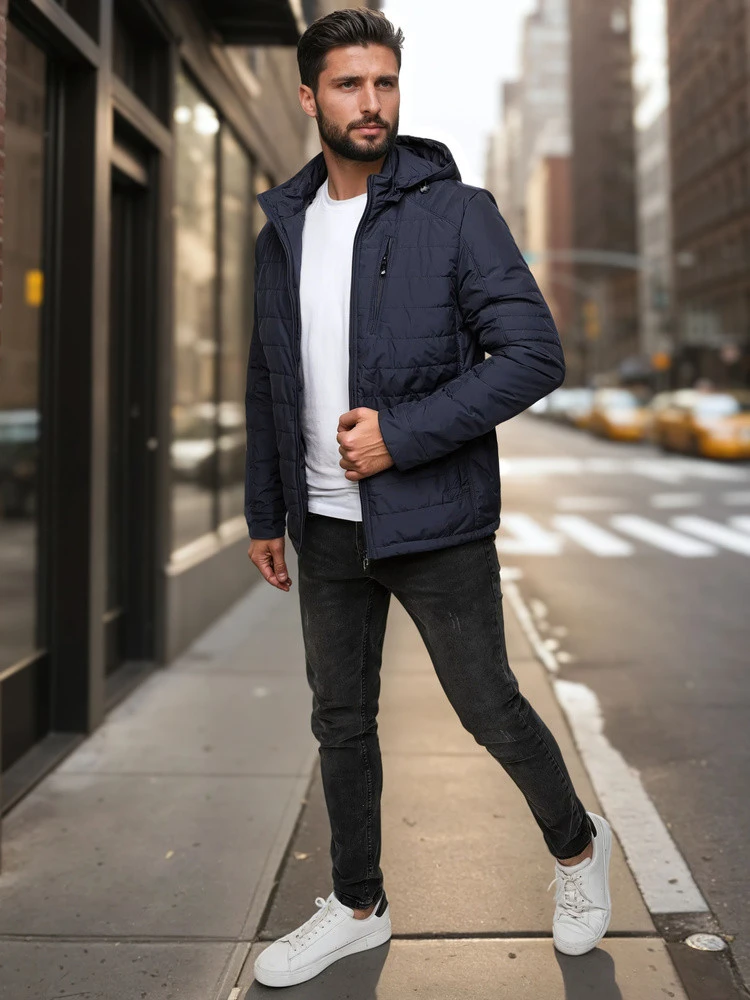 Přidání recenze k Pánská přechodná prošívaná bunda s kapucí tmavě modrá FashionStreet TX5004