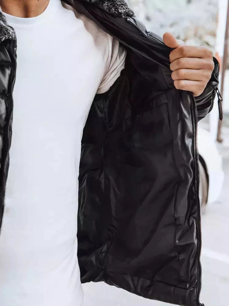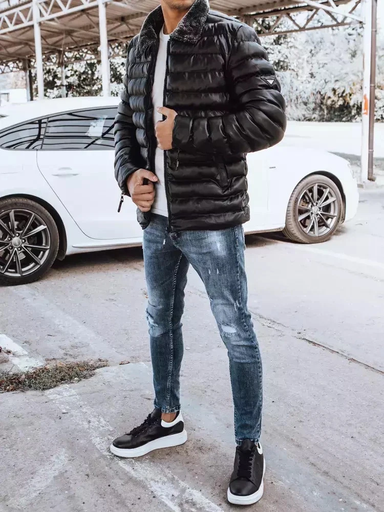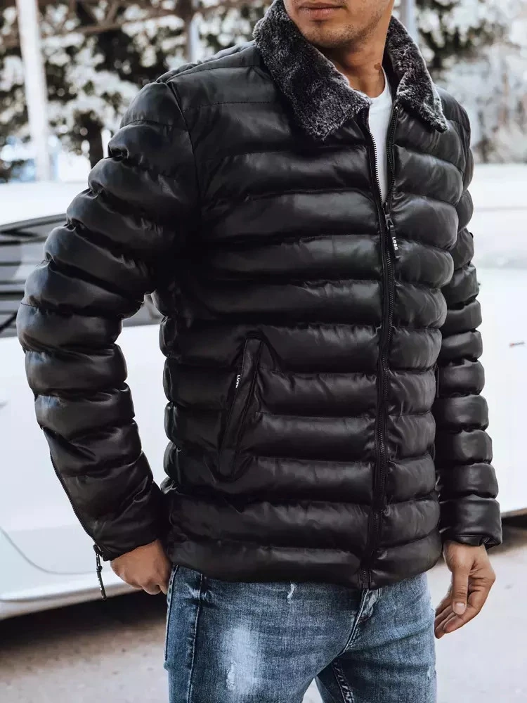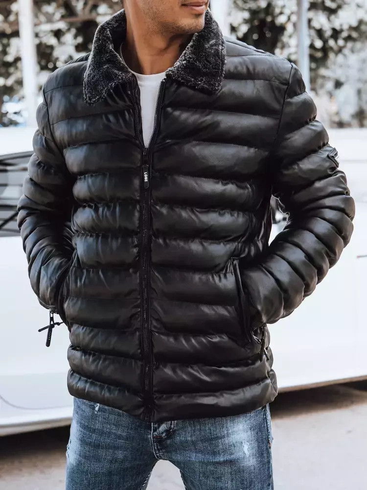 - Pánská prošívaná kožená bunda bez kapuce.