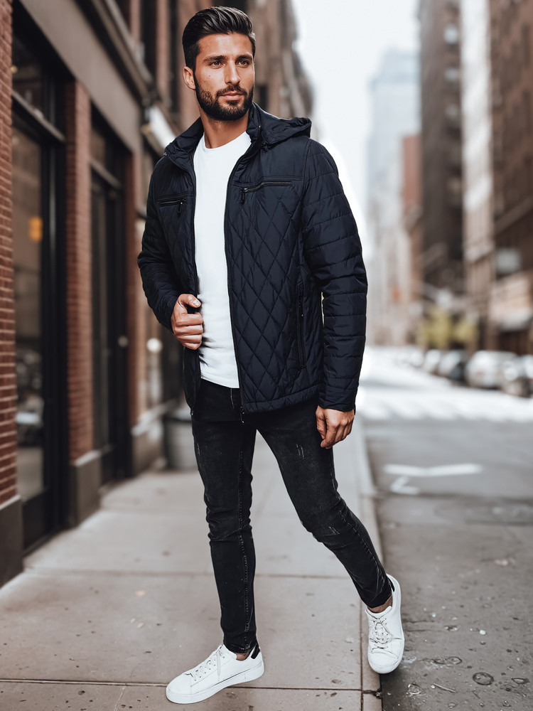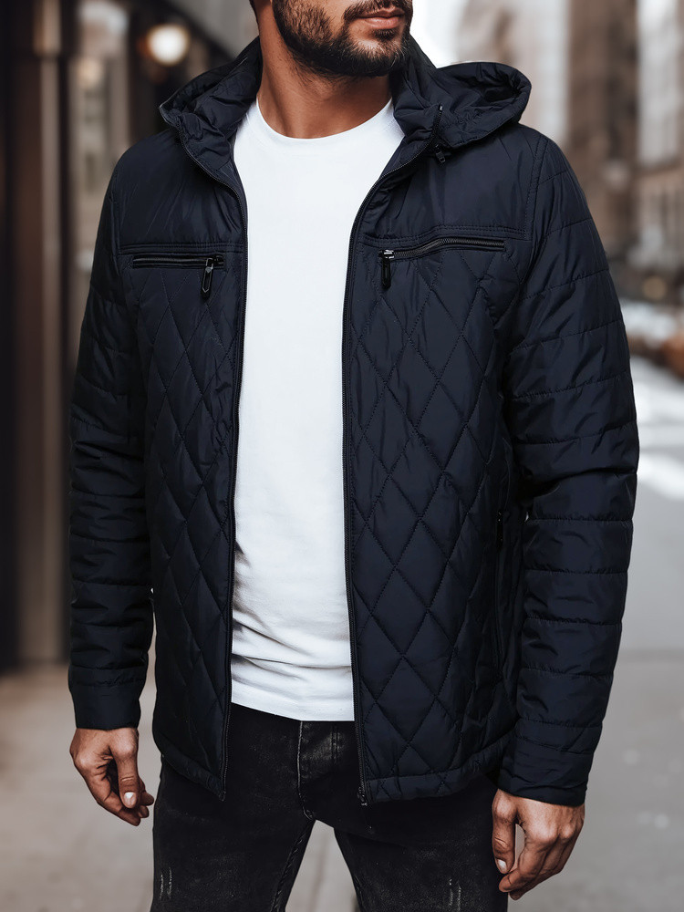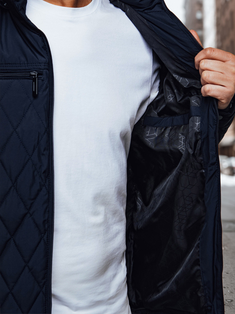 Pánská prošívaná bunda s kapucí tmavě modrá FashionStreet TX4988
