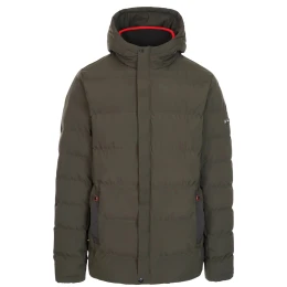 Pánská prošívaná bunda Trespass Habbton se syntetickou výplní, celoplošným zipem s klopou, kapucí a postranními uzavíratelnými kapsami.