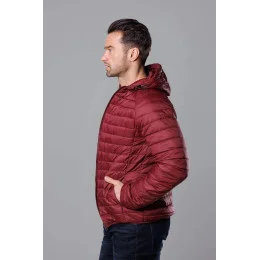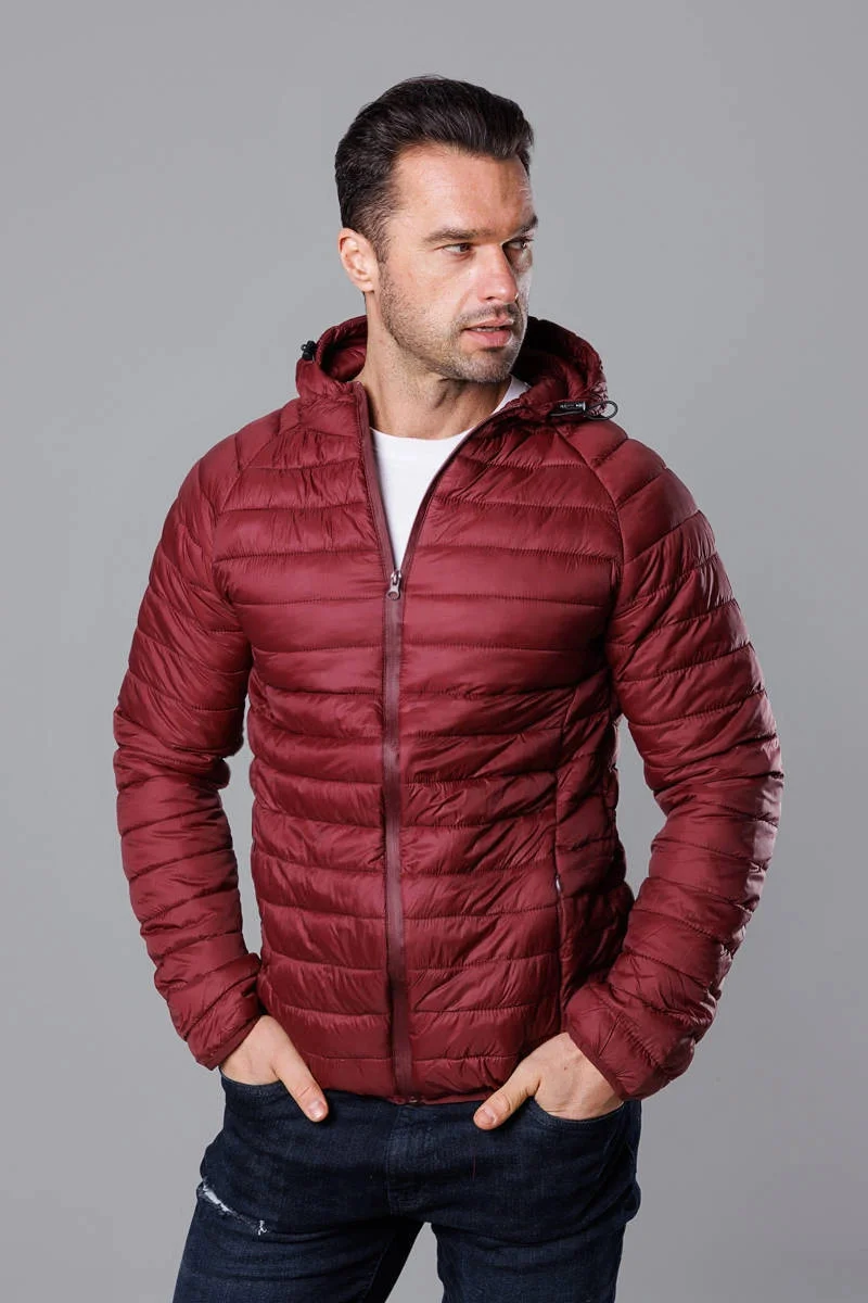 Pánská prošívaná bunda ve vínové bordó barvě s kapucí model 18345044 - J.STYLE