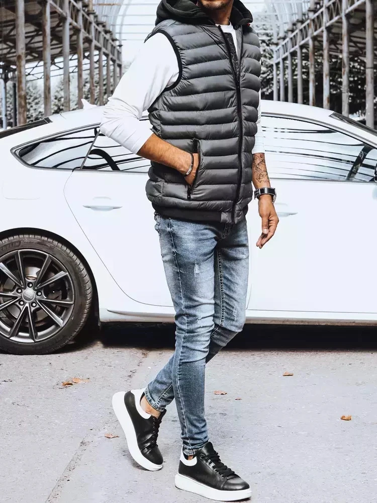 Pánská prošívaná šedá vesta FashionStreet TX4093