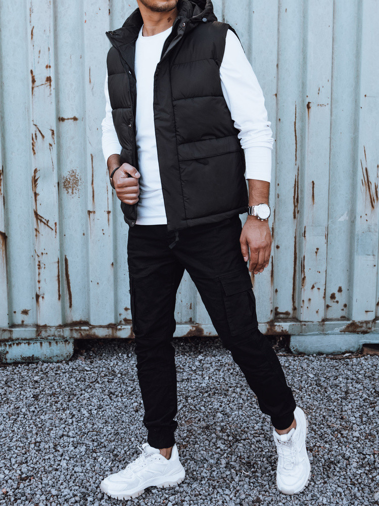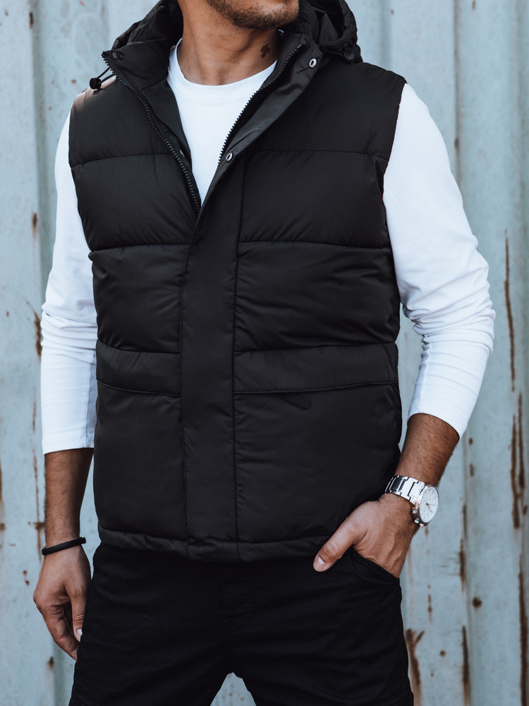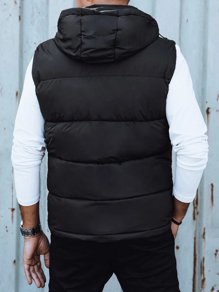 Pánská prošívaná vesta s kapucí černá FashionStreet TX4782