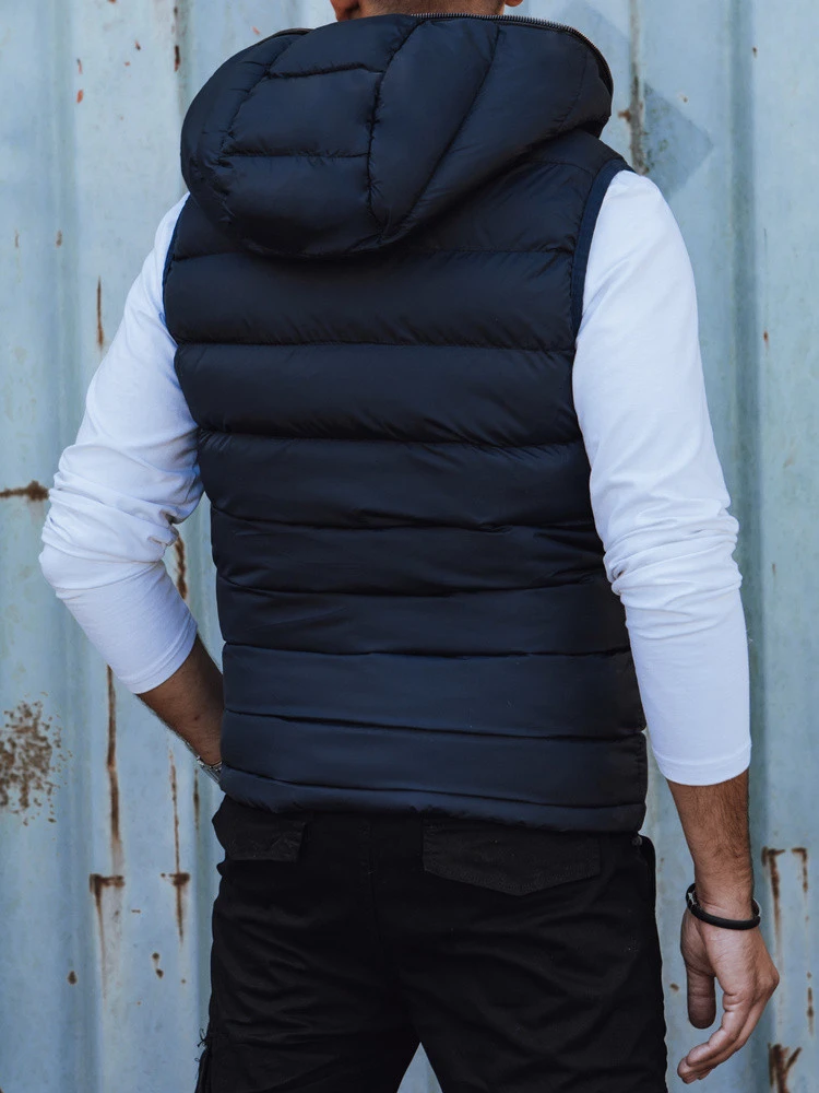 Pánská prošívaná vesta s kapucí tmavě modrá Dstreet TX4751