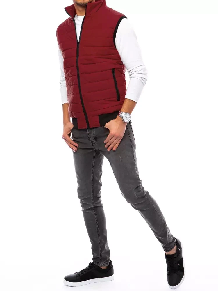 Pánská prošívaná vínová vesta FashionStreet TX4016