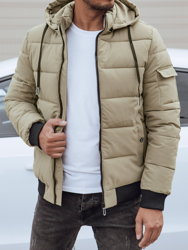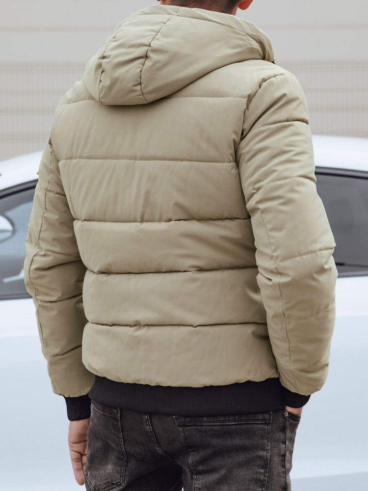 Pánská prošívaná zimní bunda s kapucí béžová FashionStreet TX4838