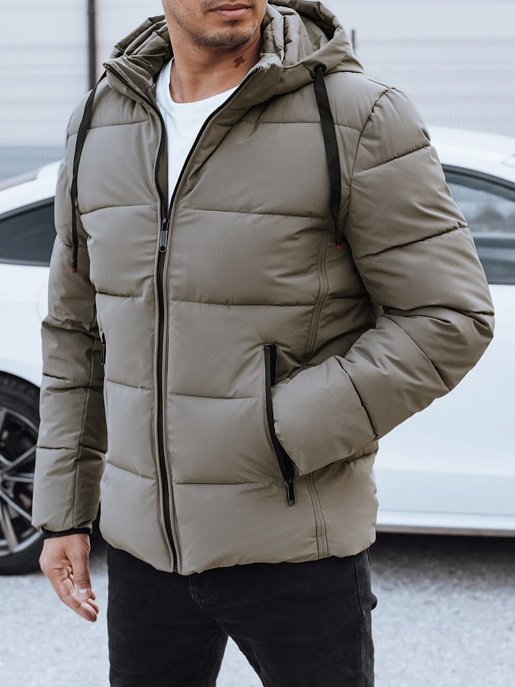 Pánská prošívaná zimní bunda s kapucí béžová FashionStreet TX5065