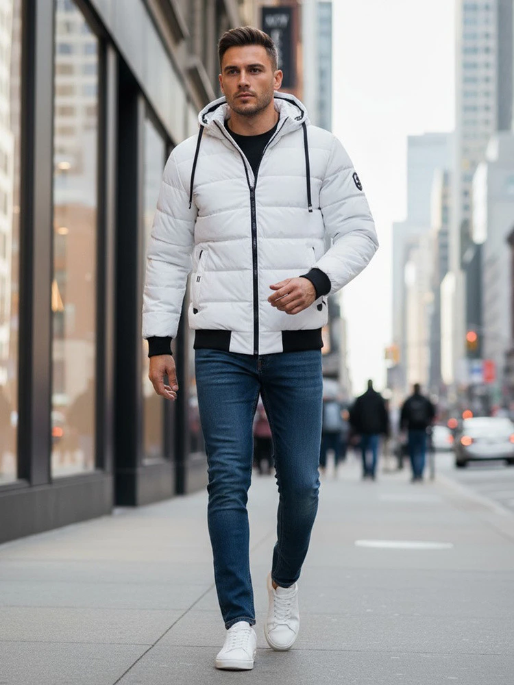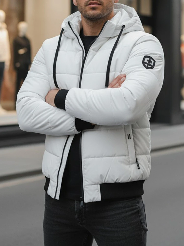 Pánská prošívaná zimní bunda s kapucí bílá FashionStreet TX5096