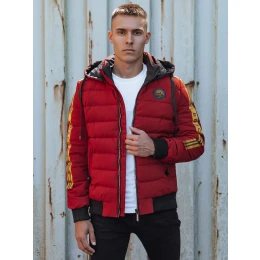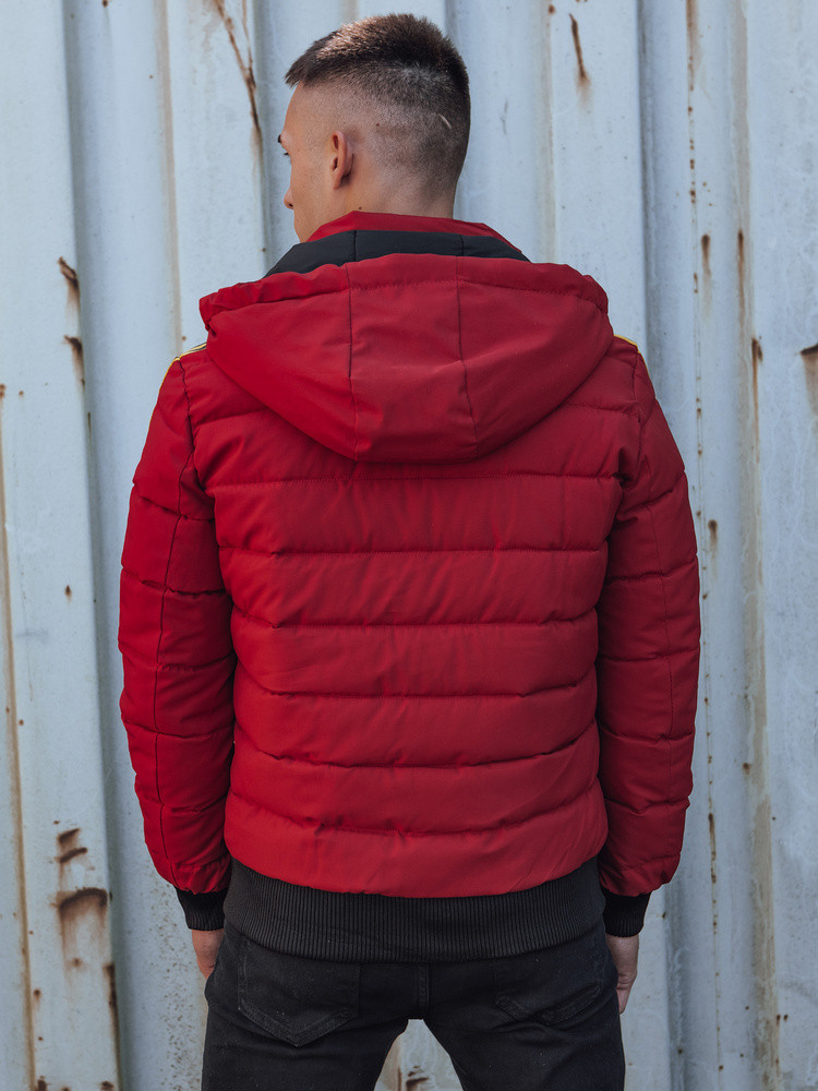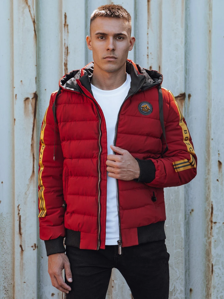 Pánská prošívaná zimní bunda s kapucí bordó Dstreet model 21980302 - FashionStreet