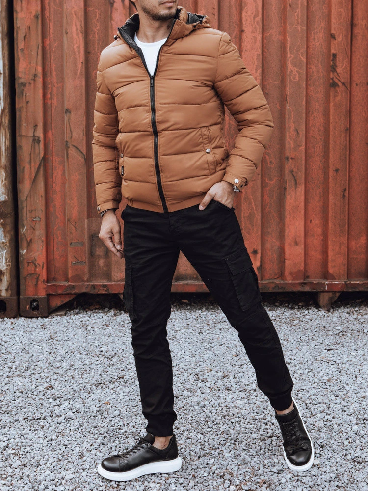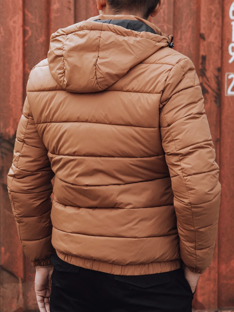 Pánská prošívaná zimní bunda s kapucí camel Dstreet TX4829