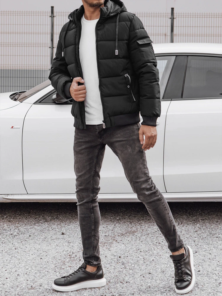 Pánská prošívaná zimní bunda s kapucí černá FashionStreet TX4841