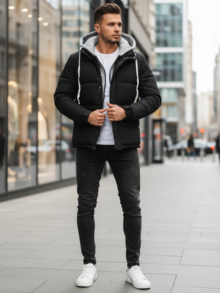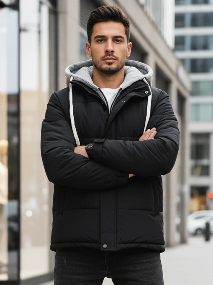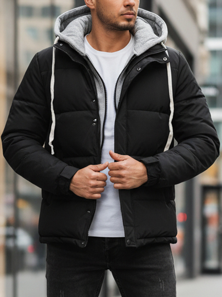 Pánská prošívaná zimní bunda s kapucí černá FashionStreet TX5104