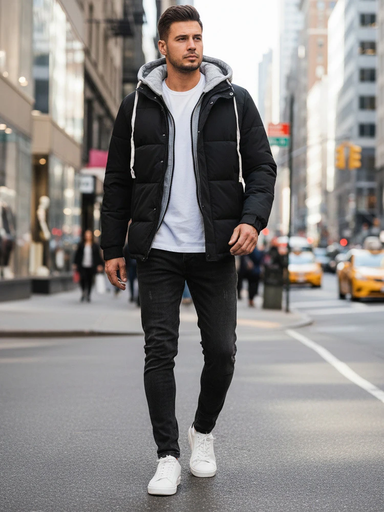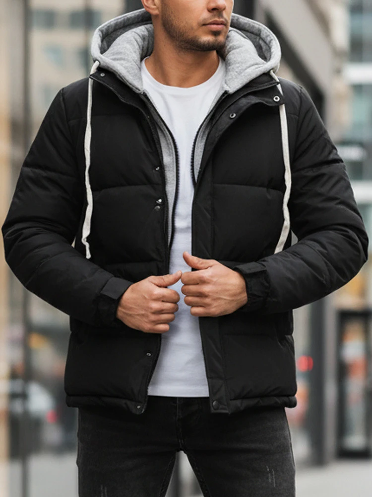 Moderní zimní bunda s praktickým sportovním střihem. Model byl navržen s ohledem na pohodlí a ochranu před chladem a má kapuci s všitou podšívkou na vnitřní straně a nastavitelnou šňůrkou na přední straně. Pečlivé prošívání a elastické prvky na manžetách zajišťují pohodlné nošení a odolnost po mnoho sezón.