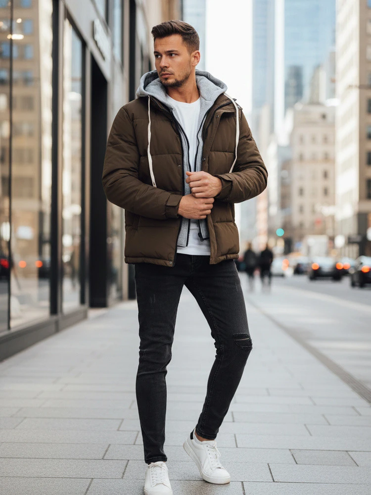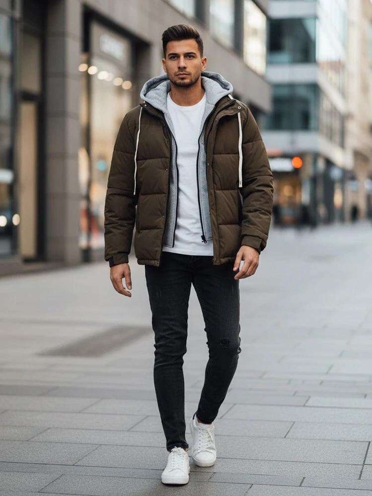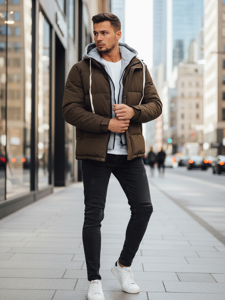 Pánská prošívaná zimní bunda s kapucí khaki FashionStreet TX5102