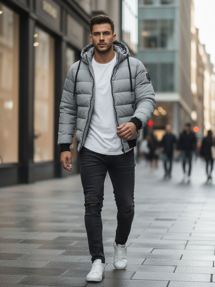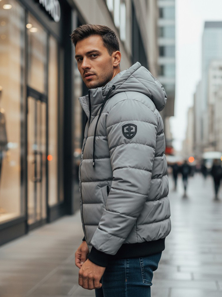 Pánská prošívaná zimní bunda s kapucí šedá FashionStreet TX5093