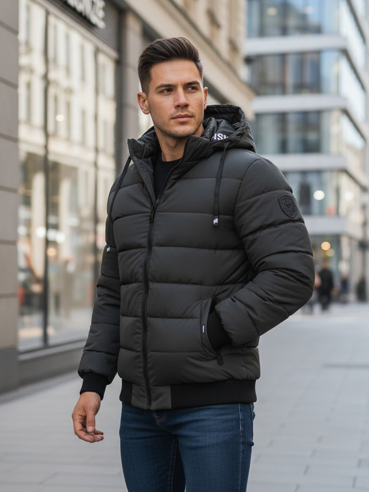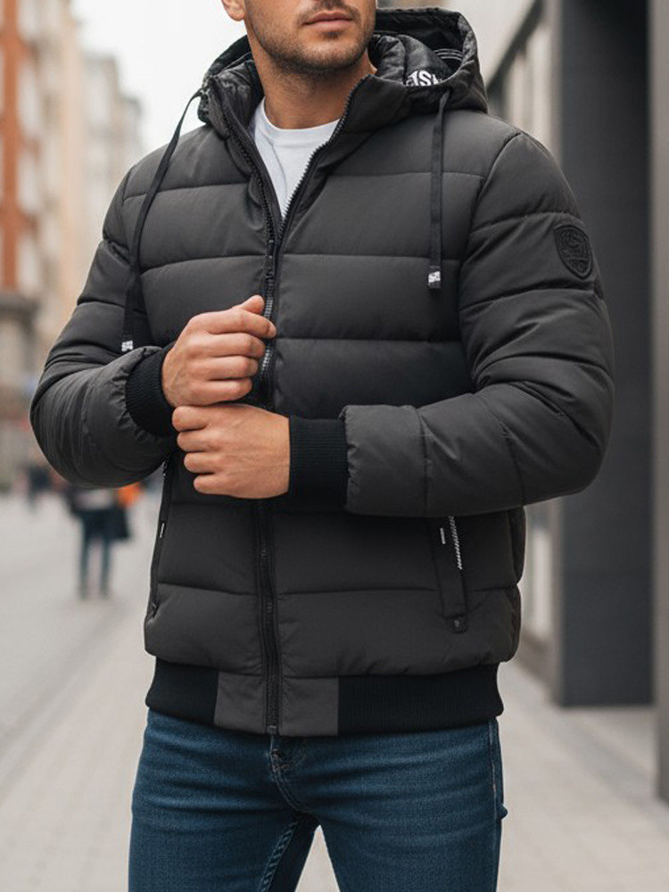 Pánská prošívaná zimní bunda s kapucí tmavě šedá Dstreet TX5095