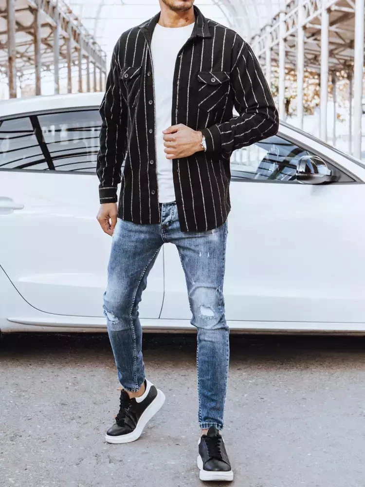 Přidání recenze k Pánská pruhovaná flanelová košile černá Dstreet DX2241