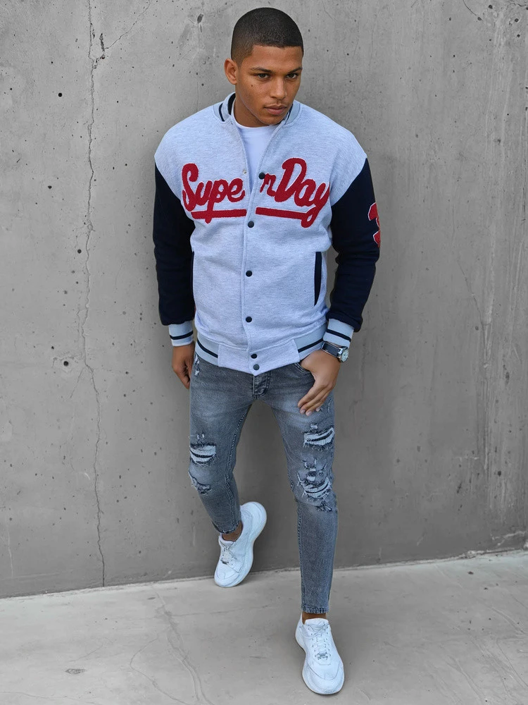 Pánská šedá mikina na zip FashionStreet BX5446