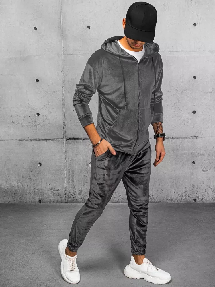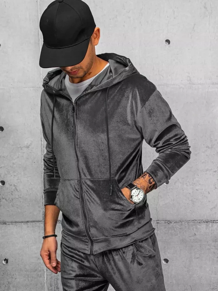 Pánská šedá velurová mikina FashionStreet BX5540