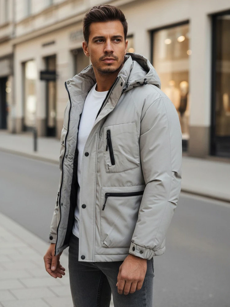 Pánská šedá zimní bunda s kapucí FashionStreet TX5107