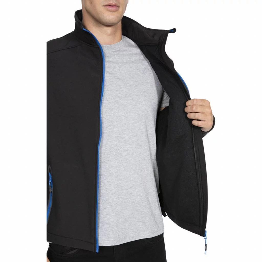 Pánská softshellová bunda je vyrobena z vysoce kvalitního, voděodolného a prodyšného materiálu, který je ošetřen funkční membránou a také příjemně hřejivou podšívkou.