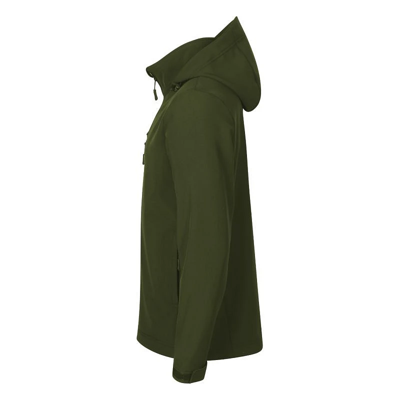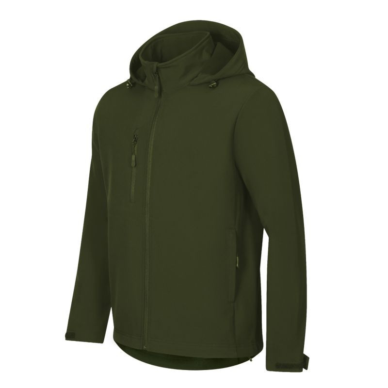 Softshell: 96 % poliester, 4 % elastan, 100D, 4-Way Stretch, wodoodporne wykończenie strona wewnętrzna: 100 % poliester - mikropolar, wykończenie antypillingowe bez etykiety - gotowy do rebrandingu, 2-warstwowy sofshell, prosty krój z bocznymi częściami, zamek błyskawiczny z odwróconym suwakiem na całej długości z ochroną podbródka, elastyczny kaptur ze sznurkiem i ściągaczem na dole, etykieta na lamówce z tyłu w neutralnym rozmiarze, regulowane obszycia rękawów za pomocą rzepu, kieszenie z odwróconym spiralnym zamkiem błyskawicznym, kieszeń na piersi, lekko przedłużona w tylnej części, wewnętrzny polar z wykończeniem antypillingowym