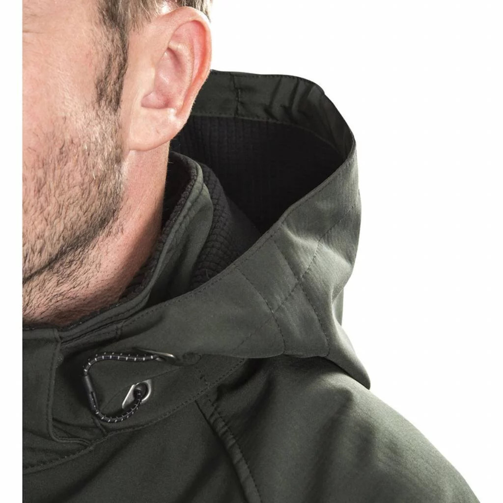 Nastavitelné manžety na suchý zip, ochranná krytka brady, 1 náprsní kapsa, 2 postranní kapsy na zip, kontrastní loga.
