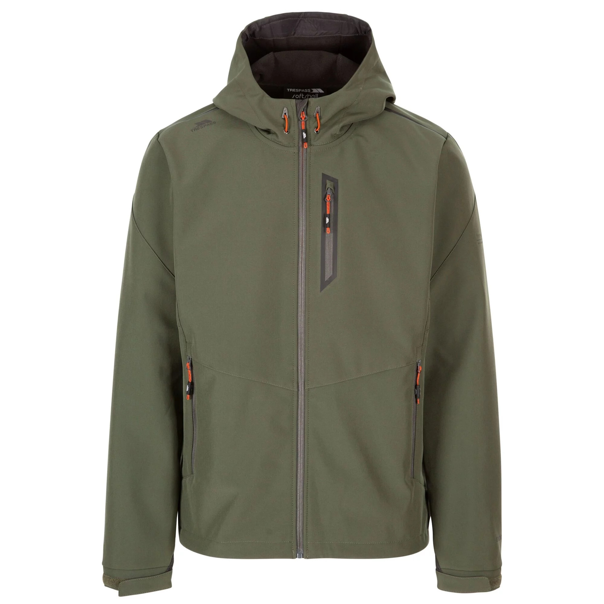 Pánská softshellová bunda na zip s kapucí Trespass Marlon s parametry voděodolnosti a prodyšnosti 8000mm/3000g/m2/24 hod.