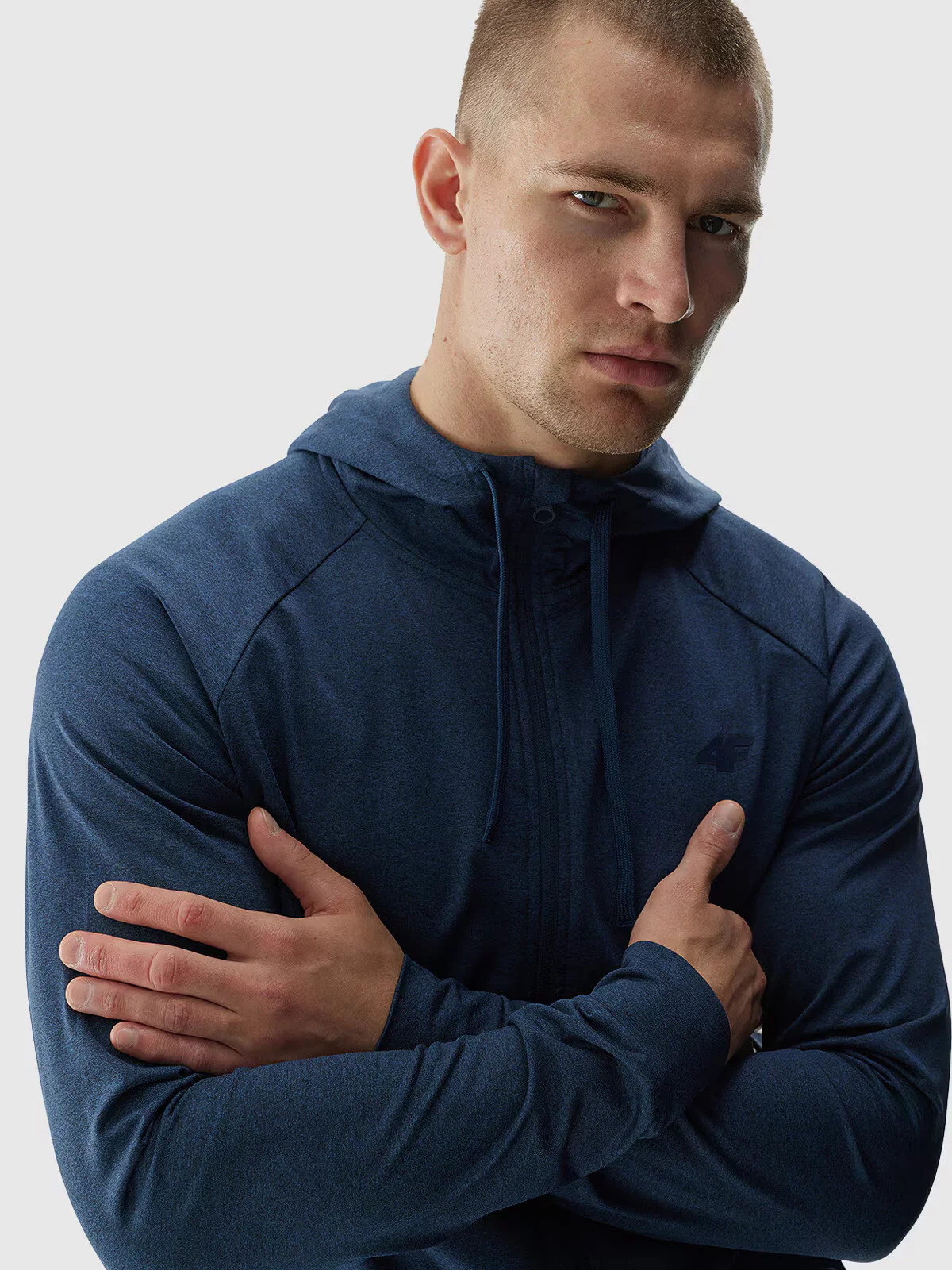 Hlavním cílem oblečení ze sportovní řady je poskytnout pohodlí a podporu při jakémkoli typu tréninku různé úrovně a intenzity. Díky pohodlnému střihu, rychleschnoucím, elastickým materiálům nebo lehkým konstrukcím poskytuje sportovní oblečení plnou volnost pohybu a umožňuje maximální soustředění a pohodlí během cvičení. Má střih regular, který se pohodlně přizpůsobí postavě. Vazba single jersey s hladkým povrchem na jedné straně je elastická a pohodlná při nošení. Pánská sportovní mikina s kapucí 4F do posilovny má střední gramáž 260 gsm, díky čemuž je měkká a prodyšnější.