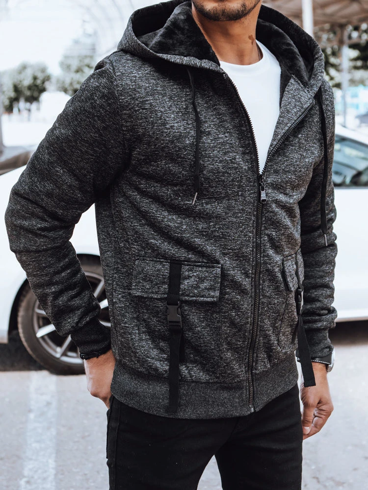 Pánská teplá mikina na zip tmavě šedá FashionStreet BX5607