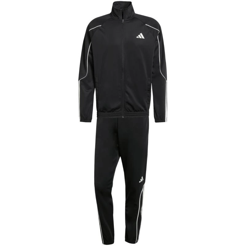 Pánská tepláková souprava adidas 3-Stripes Tracksuit Black JN1817 Pánská tepláková souprava adidas 3-Stripes Tracksuit je pánská tepláková souprava na fotbalový trénink nebo odpočinek mimo hřiště. Nevyztužená mikina má stojáček a je střižena ve standardním střihu s žebrovanými lemy. Tepláky mají elastický pas s nastavitelnou šňůrkou. Mikina má kapsy. Tepláková souprava je vyrobena z rychleschnoucího recyklovaného polyesteru. Materiál: 100% recyklovaný polyester.