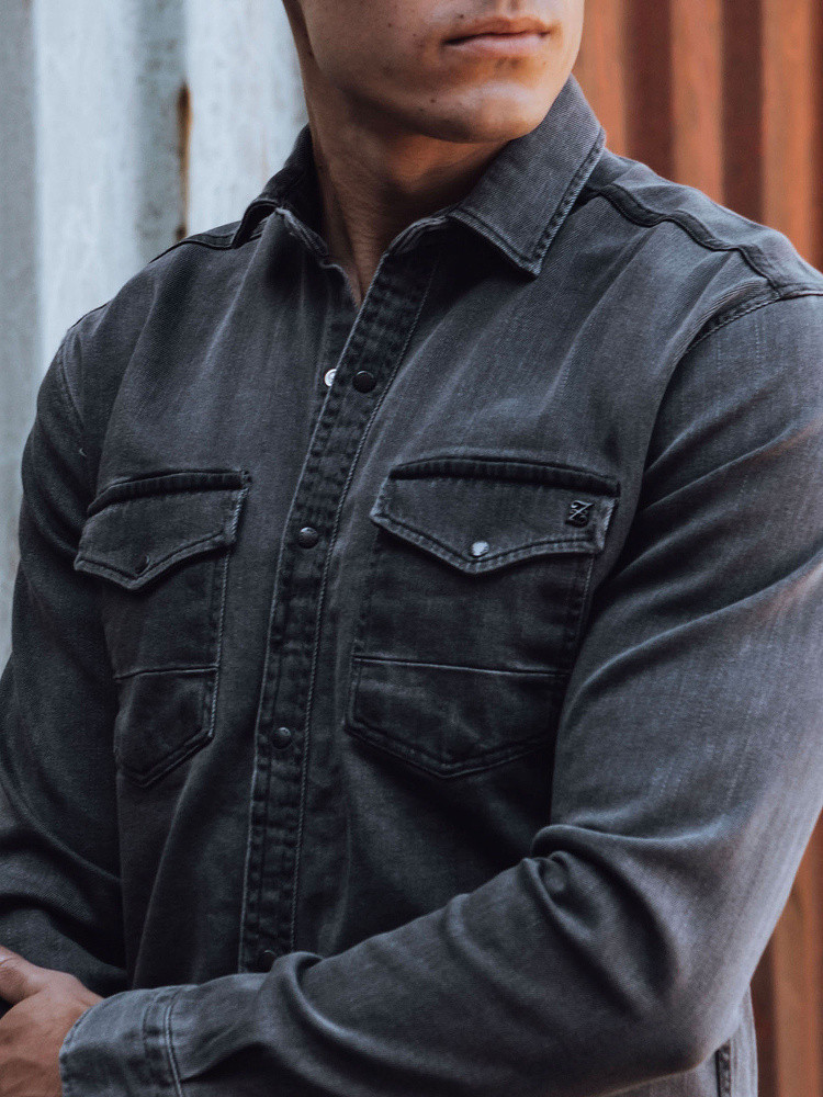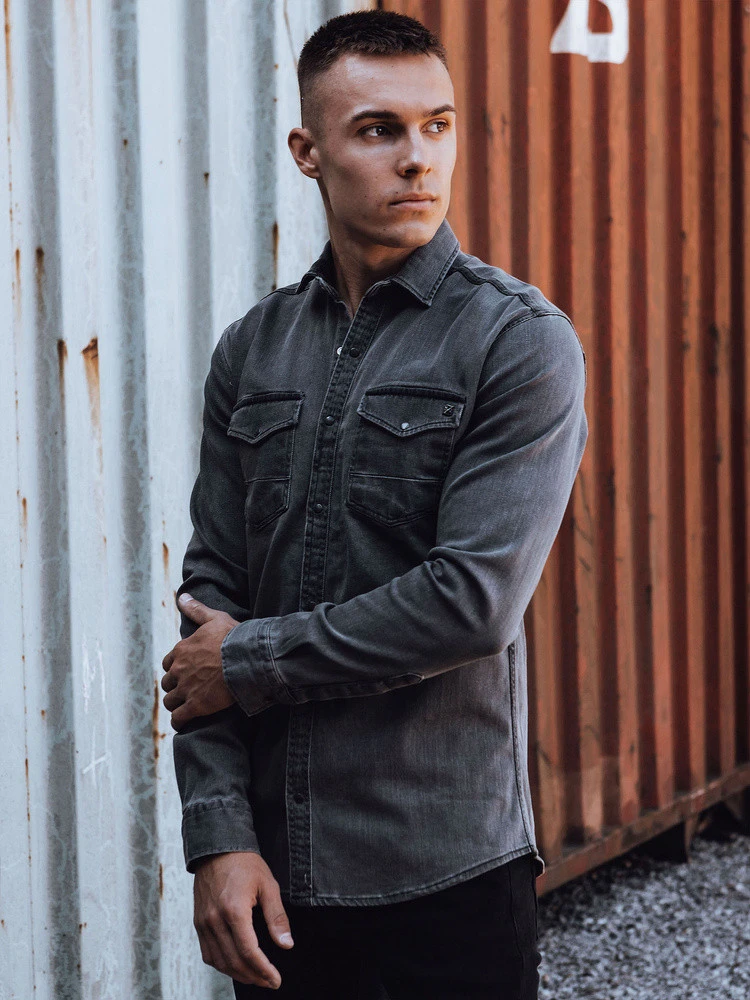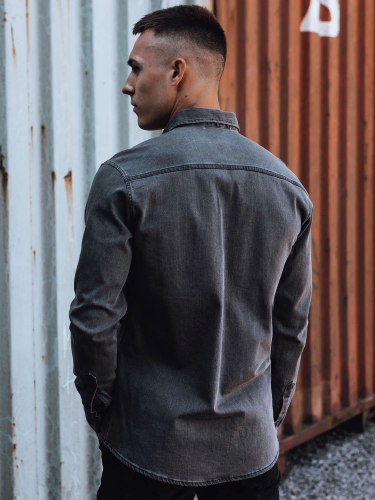 Pánská tmavě šedá džínová košile FashionStreet DX2588
