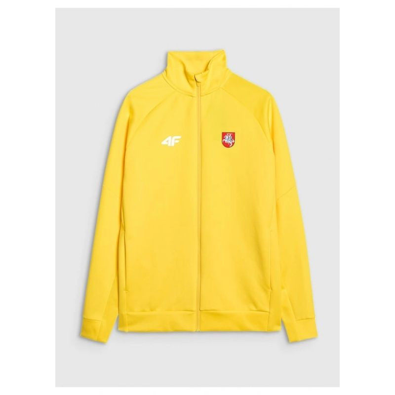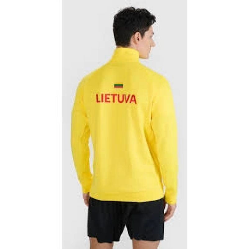 Stójka pod szyją zwiększa osłonę, a jednokierunkowy zamek główny ułatwia zakładanie i zdejmowanie bluzy. Model posiada 2 otwarte kieszenie boczne oraz raglanowe rękawy, które nie krępują ruchów. Charakterystycznym akcentem są nadruki wykonane metodą sublimacji: z przodu z herbem Litwy, a na plecach z napisem „Lietuva” i flagą kraju.