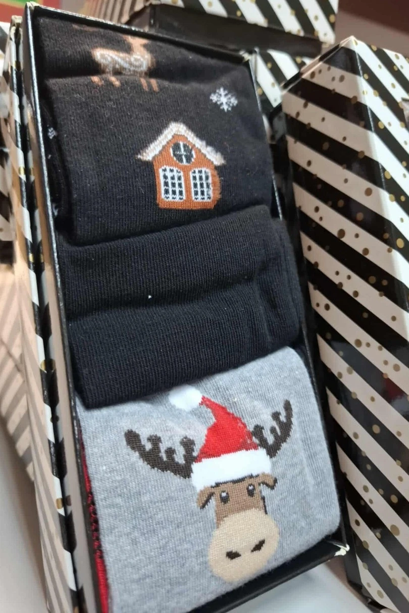 Ponožky jsou vyrobeny z měkkého, příjemného materiálu, který zaručuje celodenní pohodlí při nošení. Jedná se o praktickou a stylovou sadu, která je ideální jako dárek i jako doplněk vašeho vánočního šatníku.