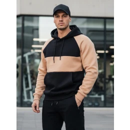 Pánská velbloudí a černá pruhovaná mikina s kapucí Dstreet model 21986001 - FashionStreet