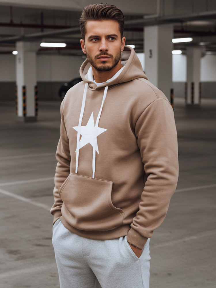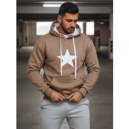Bluza męska z kapturem i nadrukiem BX5931 kamelowa