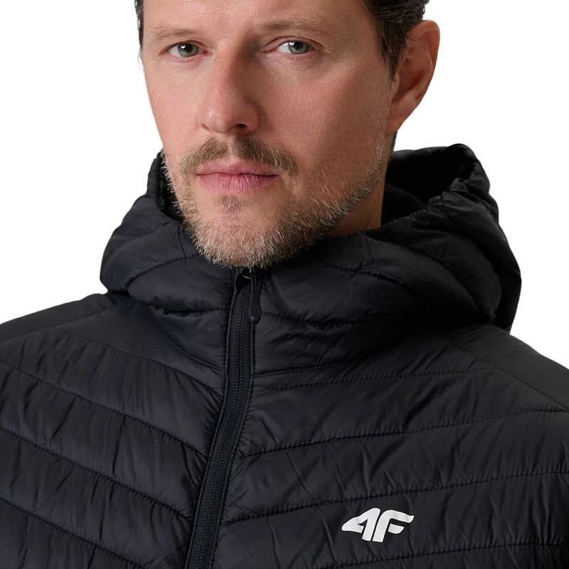Kamizelka męska 4F M344 głęboka czerń 4FWSS26TVJAM344 20S Męski bezrękawnik na przejściowe dni z hydrofobową powłoką i syntetyczną ociepliną, która zapewnia ciepło bez obciążenia. Regularny krój gwarantuje wygodę, a kaptur chroni przed wiatrem. Trzy kieszenie na zamek i zamek na całej długości zwiększają funkcjonalność na co dzień. Dane techniczne:· Materiał główny: 100% poliester· Podszewka: 100% poliester· Wypełnienie: 100% poliester· Hydrofobowa impregnacja - zabezpiecza materiał przed wchłanianiem wody i niespodziewanym deszczem· Lekka ocieplina poliestrowa - zapewnia optymalne ciepło bez uczucia ciężaru i łatwo się pielęgnuje· Pikowanie w jodełkę i poziome - łączy modny wygląd z równomiernym rozkładem ocieplenia· Zintegrowany kaptur bez regulacji - chroni przed wiatrem i lekkim deszczem· Jednokierunkowy zamek główny - pozwala łatwo założyć lub zdjąć bezrękawnik· 2 boczne kieszenie na zamek oraz kieszeń wewnętrzna na zamek - bezpiecznie prze
