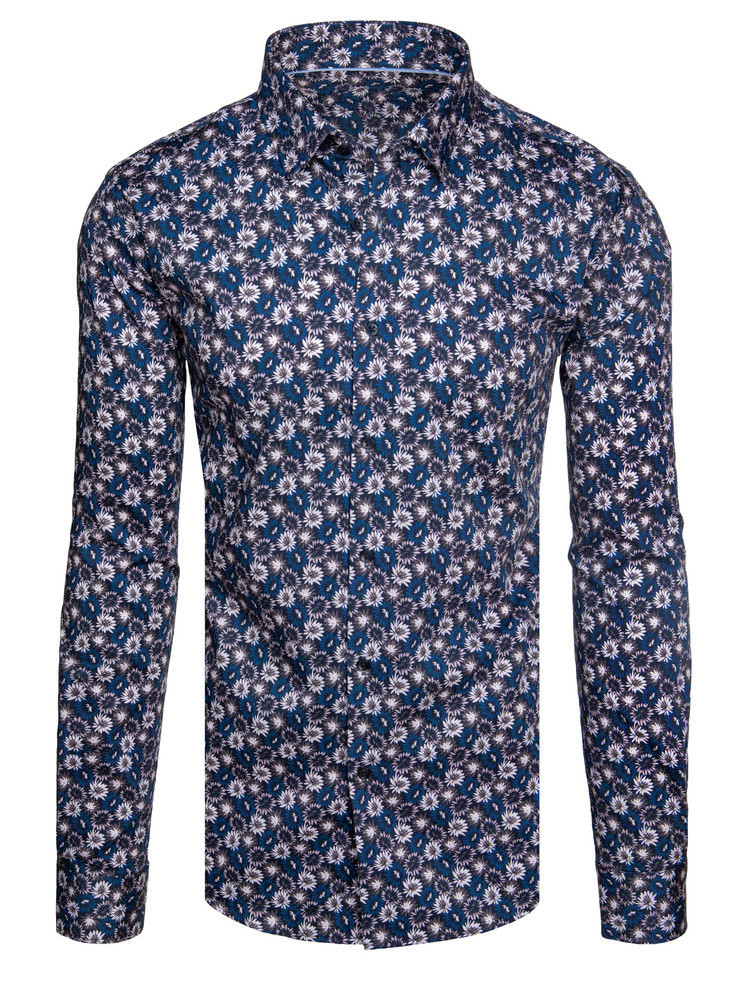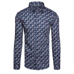 Pánská vzorovaná košile s dlouhým rukávem tmavě modrá Dstreet model 21989469 - FashionStreet