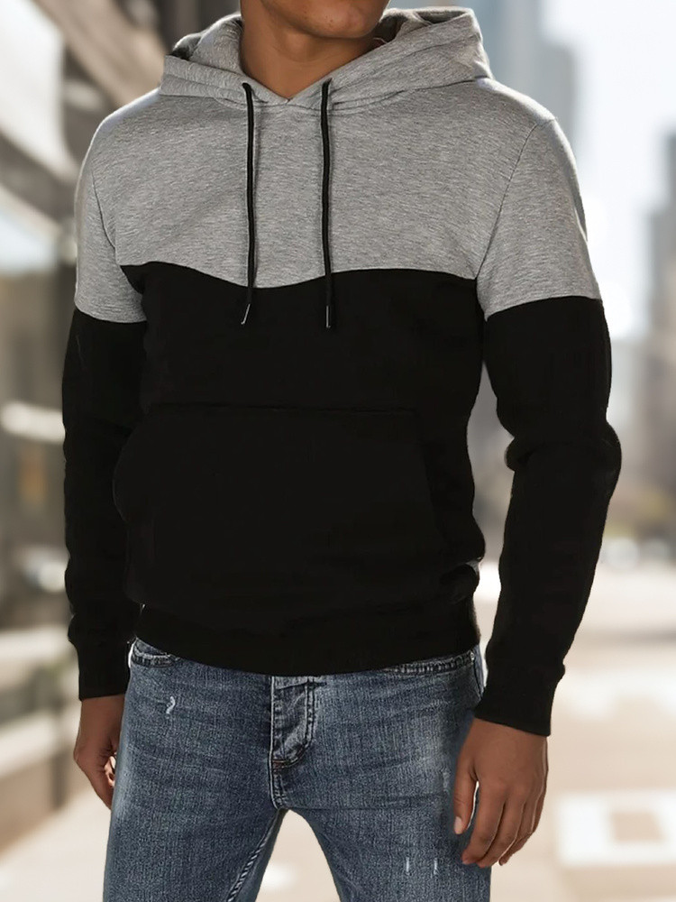 Stylowa bluza męska z modnym połączeniem kolorów i wygodnym kapturem. Regulacja sznurkiem umożliwia dopasowanie, a kieszeń kangurka zapewnia wygode. Ściągacze na rękawach i dole podkreślają casualowy charakter. Idealna opcja na co dzień, pasująca zarówno do jeansów, jak i sportowych stylizacji.