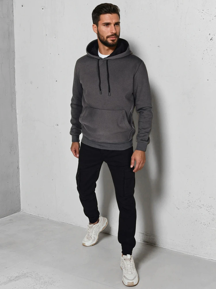 Pánská základní mikina s kapucí v grafitové barvě FashionStreet BX5861
