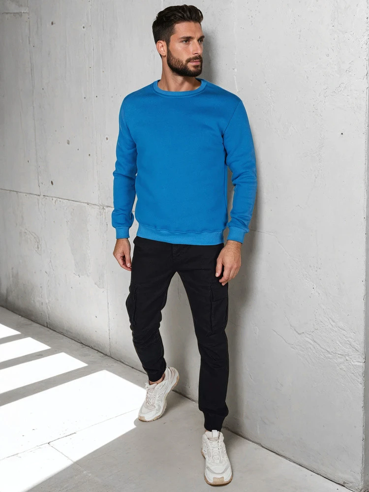Klasyczna bluza męska w minimalistycznym stylu. Wykonana z miękkiego materiału, zapewniającego wygodę przez cały dzień. Ściągacze przy rękawach, dole i dekolcie gwarantują dobre dopasowanie. Idealna na co dzień, do jeansów lub sportowych stylizacji. Must-have w każdej garderobie.