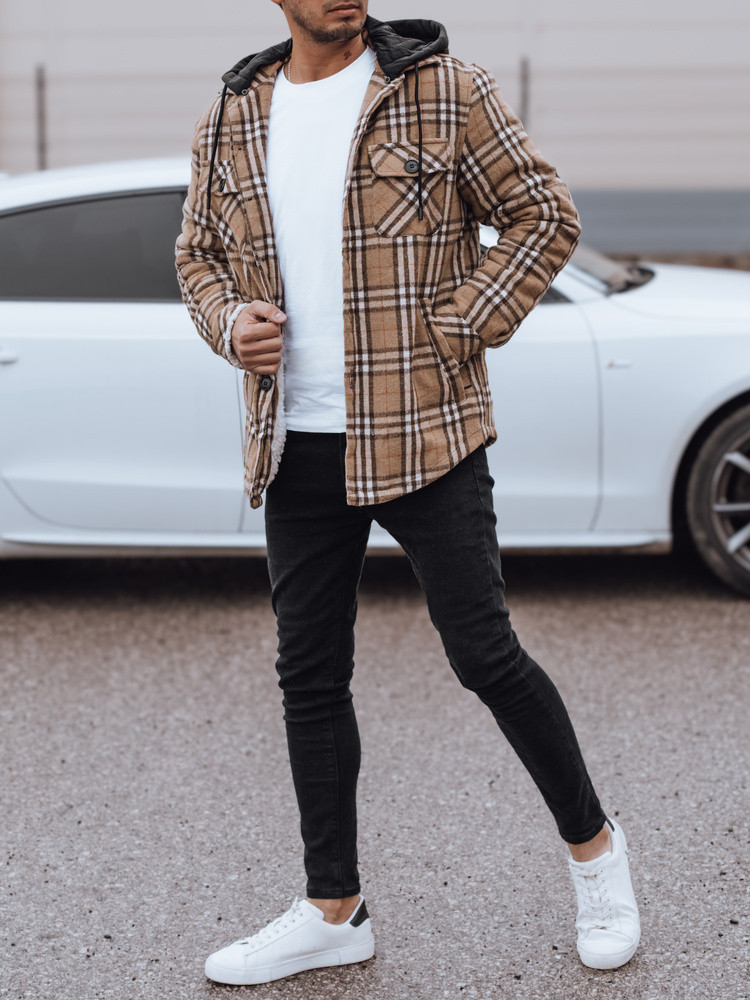 Pánská zateplená bunda s kapucí béžová FashionStreet TX4955